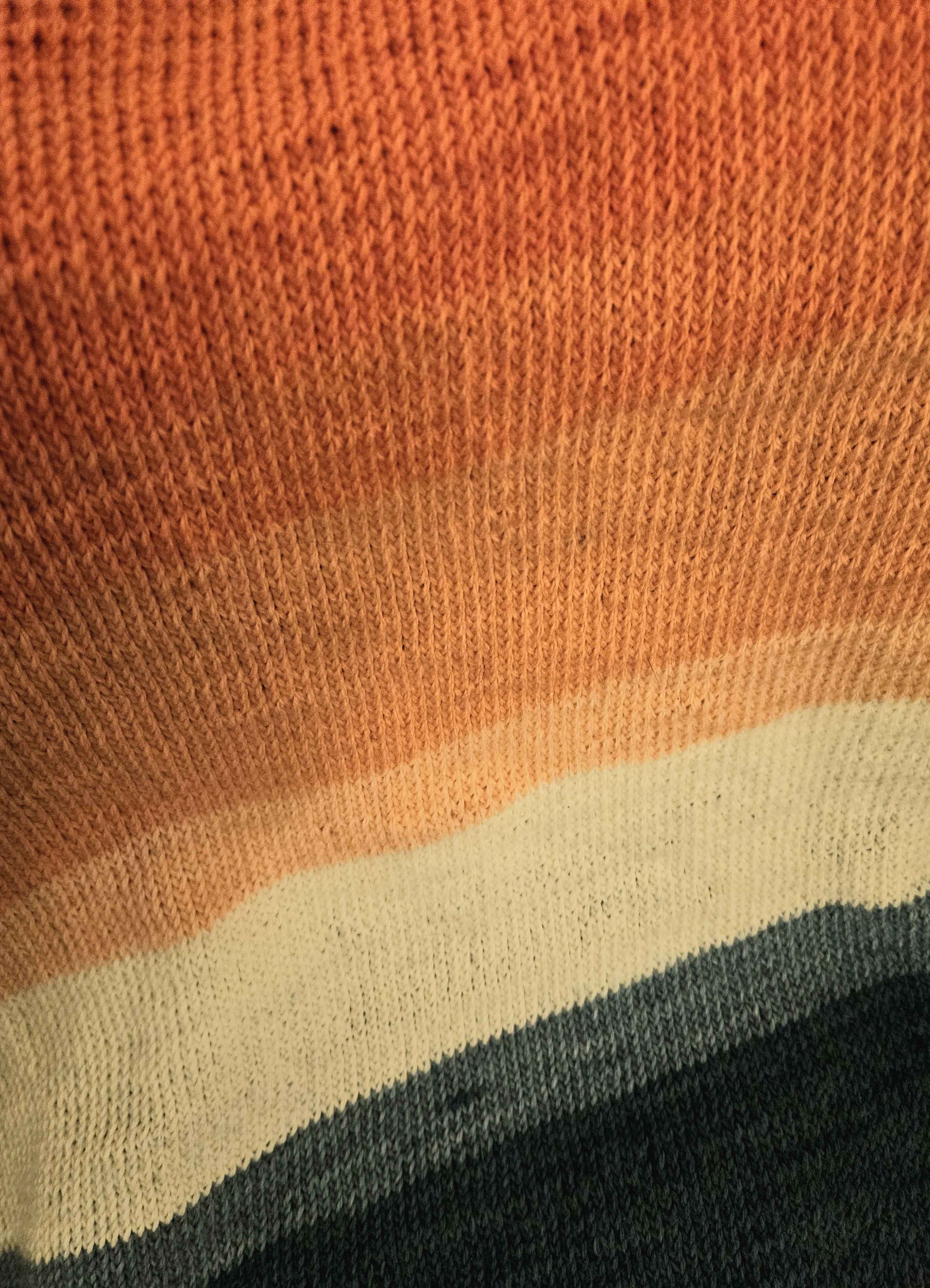 so i have this kinda weird shawl/sweater that i've been knitting off and on for like two years, mostly off cuz i've been busy with other things and i did accidentally spoil myself working with natural fibers where as this is acrylic yarn from before. it's not really based on a pattern cuz i wanted something very specific and weird. it's like a shawl mixed with a sweater. kind of like if you took a poncho and sewed the sides up except for an arm hole. or if you made a sweater but only the front and back panels and no sleeves. the back panel took forever and that's probably one of the reasons it's taken me so long to work on. the width is from about elbow to elbow instead of just shoulder to shoulder. but last night i finished one of the front panels and sewed it together and it's starting to feel like something instead of just a mass of knit fabric with no purpose.